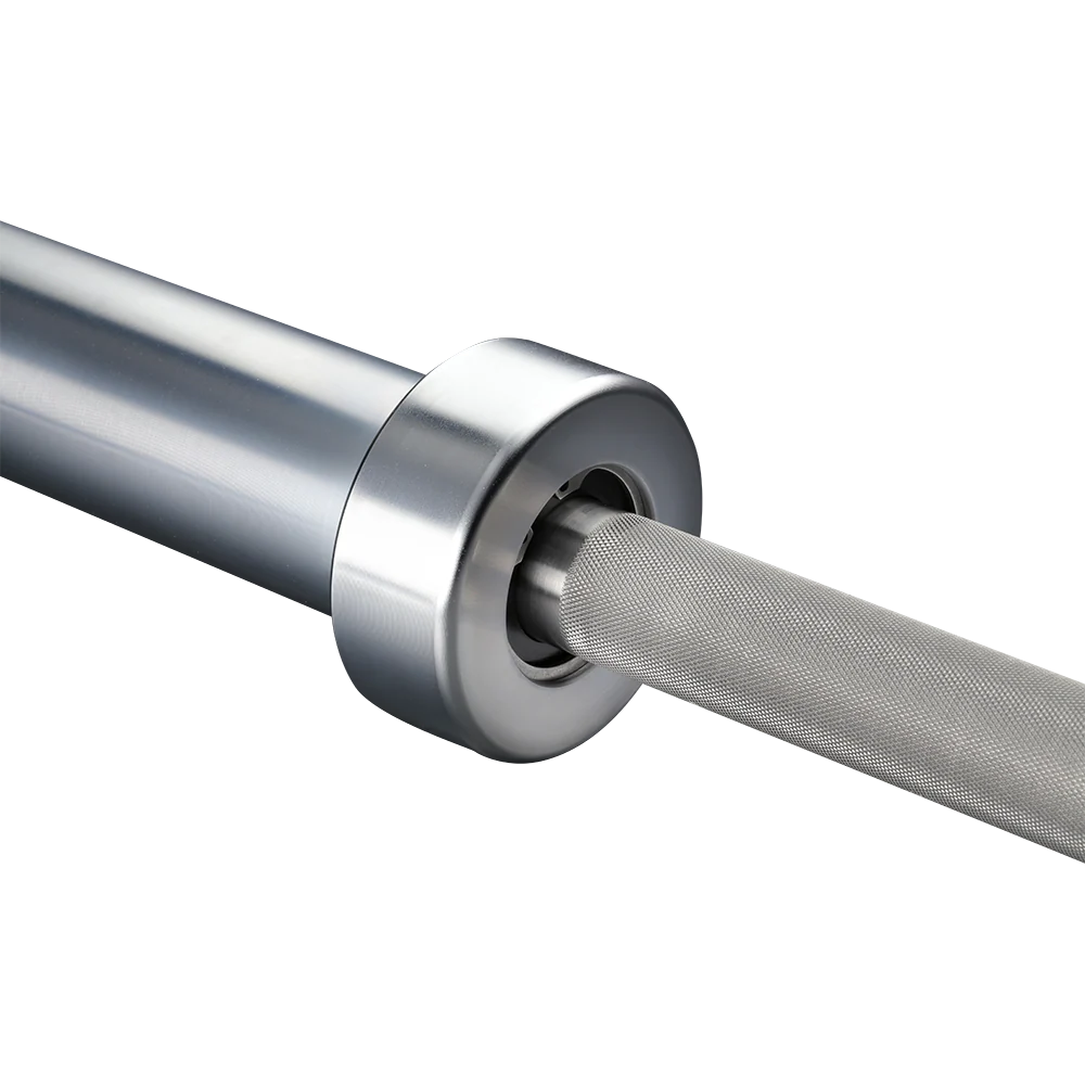 The Stainless Bearing Bar offers elite performance for Olympic weightlifting. It has a precision-ground stainless steel shaft with a 190,000 PSI tensile strength and hard chrome-coated sleeves. Its exclusive concealed bearing system provides a smoother spin with dust and chalk seals. Available in 15 kg and 20 kg versions with 25 mm and 28 mm diameters, this bar is made in the USA and carries a limited lifetime warranty.